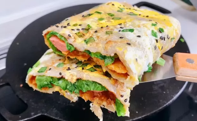 Si necesitas un desayuno rápido, contundente y delicioso, este es tu plato. Conocido como el crepe chino, es una de las comidas callejeras más comunes para desayunar en China. Es fácil de encontrar en las esquinas, fuera de las estaciones de metro y cerca de atracciones turísticas. Aunque los tipos de jianbing varían según la ciudad, los ingredientes principales son generalmente los mismos. La masa se hace con harina de trigo y granos y se fríe en un comal con un huevo como base. Luego, se rellena con cebollín, lechuga, cilantro y una rica salsa de chile. Normalmente, se ofrecen rellenos adicionales como lo pueden ser carne de res en salsa de pimienta negra, salchichas, pato, entre otros.