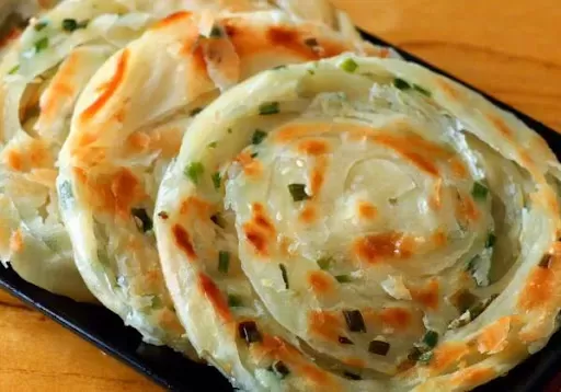Es el panqueque salado definitivo. Lo encuentras en todo el país. Una masa simple se estira, se unta con aceite y se cubre generosamente con cebollín picado. Luego se dobla y se enrolla para crear innumerables capas escamosas antes de aplanarse y freírse en aceite hasta que ambos lados estén dorados e increíblemente crujientes. El interior permanece suave, masticable y ardiente, lleno del sabor aromático y salado del cebollín. Es un snack simple pero perfecto.