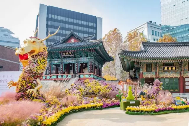 A diferencia de la mayoría, este templo importante no está en las montañas, sino rodeado por los rascacielos de Seúl. A poca distancia de los palacios Gyeongbokgung y Changdeokgung, sus vibrantes colores jade, rojo y dorado y sus frescos detallados ofrecen un bolsillo de tranquilidad atemporal en la ciudad.