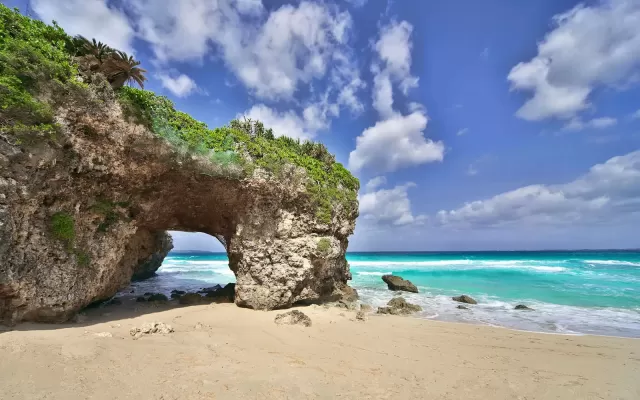 En la isla de Miyako, en Okinawa, la playa Sunayama destaca con personalidad propia. No es una playa común de arena blanca y mar azul intenso; allí puedes encontrar un arco natural de coral, elevado y erosionado durante milenios por las olas, se ha convertido en el símbolo indiscutible de la playa.