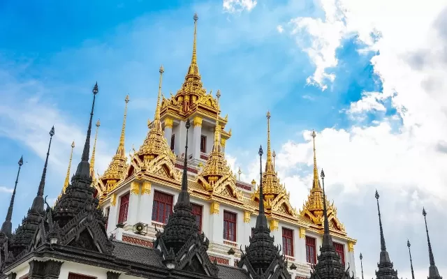 Conocido oficialmente como Wat Ratchanatdaram, este templo es famoso por su estructura única: el Loha Prasat, o "Castillo de Hierro". Su arquitectura, con múltiples terrazas cuadradas y 37 agujas metálicas, se distingue de cualquier otro templo en la ciudad.