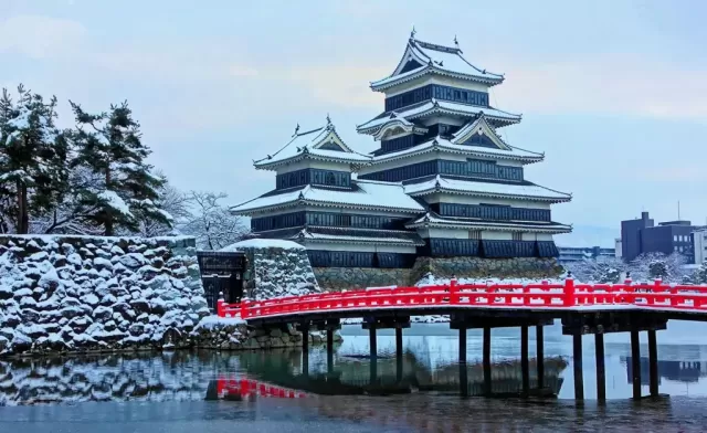Considerado uno de los castillos originales más completos y bellos, Matsumoto es único porque fue construido en una llanura. Su torre principal tiene una mazmorra secundaria y una torre unidos a ella. Su exterior negro es característico y transmite una sensación de grandeza. En su interior de madera, subirás por escaleras empinadas, verás trampillas para lanzar piedras a los invasores y aberturas para arqueros. Desde la planta superior tendrás una vista privilegiada de la ciudad. En primavera, es un lugar muy popular para ver las icónicas flores de cerezo.