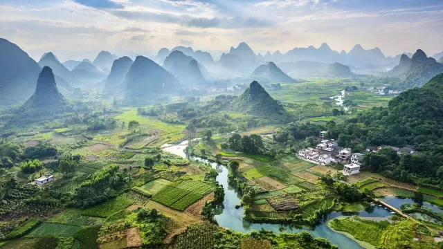 Si estás buscando un destino en Asia que combine paisajes naturales impresionantes, cultura auténtica y actividades al aire libre, ¡deberías agregar Guilin a tu lista! Este lugar está ubicado en la región autónoma de Guangxi Zhuang, en el sur de China, Guilin es famoso por sus formaciones kársticas, el serpenteante río Li y sus impresionantes terrazas de arroz. Es, sin duda, uno de los destinos turísticos más conocidos de China, a menudo colocado justo después de Beijing, Xi'an y Shanghai.