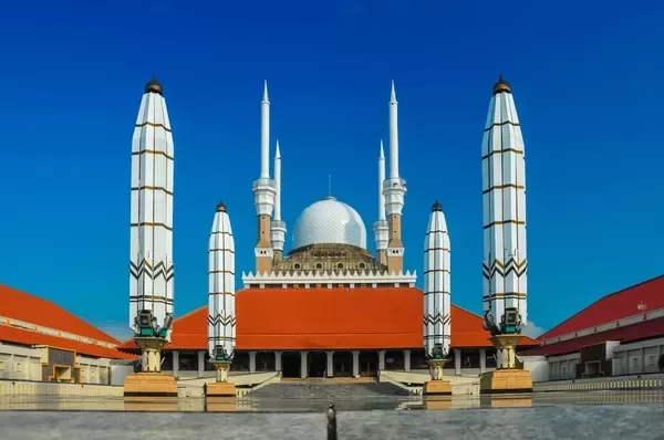 En la capital de Java Central, encontrarás este complejo que se organiza en tres edificios principales con forma de U, creando un espacioso patio. Su diseño incorpora principios javaneses; el techo central se asemeja al de una casa tradicional local, pero también simboliza los pasos hacia la presencia de Dios. Más que un lugar de culto, el complejo funciona como un destino turístico completo, con museo, centro de convenciones, café y hotel.