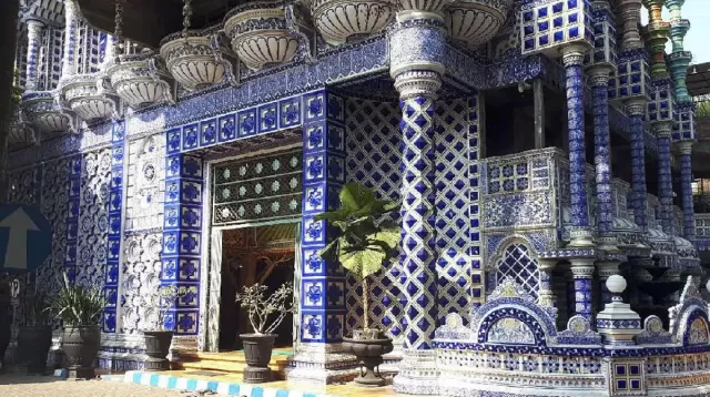 En medio de un humilde pueblo, esta mezquita de diez plantas tiene una apariencia muy distintiva. Su historia es peculiar: los locales cuentan que el edificio apareció de forma casi misteriosa, sin que nadie notara su construcción, lo que llevó a muchos a creer que fue obra de espíritus. El masivo edificio es muy ornamentado, con patrones detallados en cada rincón y dominado por tonos azules y blancos. El complejo incluye una escuela islámica y áreas abiertas al público como estanques, terrazas y gazebos.