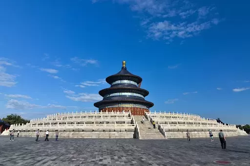 Prepárate para caminar por extensos parques arbolados (¡especialmente sus icónicos cipreses antiguos!) que conducen a las joyas arquitectónicas. En el sur, el Altar Circular (Huánqiū Tán), una estructura de mármol blanco de tres terrazas donde el Emperador ofrecía sacrificios al cielo. Cerca, la Bóveda Imperial del Cielo (Huángqióng Yǔ), con su famoso Muro del Eco, donde un susurro viaja misteriosamente de un extremo a otro. Conectando norte y sur, la imponente Vía Elevada Sagrada (Dānbì Qiáo), una calzada elevada que parece llevarte hacia el cielo. Al norte, el símbolo indiscutible de Beijing: el Templo de las Rogativas por las Buenas Cosechas (Qínián Diàn), una estructura circular de triple tejado azul sobre una base de mármol blanco, simplemente majestuosa. No olvides buscar el Palacio de la Abstinencia (Zhāigōng), donde el emperador ayunaba antes de las ceremonias.