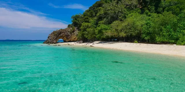 Encontrado también en el Mar de Andamán, este parque marino es un vasto archipiélago de 50 islas que abarca 1,490 kilómetros cuadrados. Su estado prístino es tan destacado que fue declarado Parque y Reserva Patrimonial de la ASEAN en 1982. Es un destino fantástico para snorkel, buceo y para aquellos que buscan acampar en playas desiertas bajo las estrellas. Tiene una pequeña tarifa de entrada de 200 bahts. Al igual que las Similan, Tarutao está sujeto a los monzones. La temporada de visita va de noviembre a abril, cuando los cielos están despejados y el mar en calma. Durante estos meses, la temperatura promedio es de unos 28°C. Visitar fuera de temporada no es recomendable, ya que el parque oficialmente cierra por las condiciones peligrosas del mar y las fuertes lluvias.