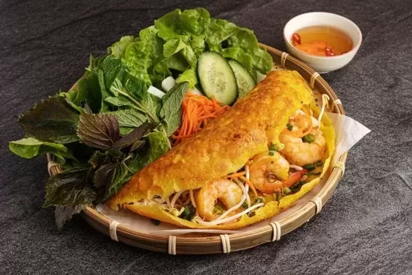 Para una experiencia interactiva, pide un bánh xèo. Es una crepa o pancake grande y crujiente, de color amarillo por la cúrcuma, rellena de cerdo, camarones y brotes de soja. La manera correcta de comerlo es cortar un pedazo, envolverlo en una hoja de lechuga con hierbas frescas y mojarlo en la salsa. Su nombre significa "panqueque sésil", por el sonido que hace la masa al freírse.