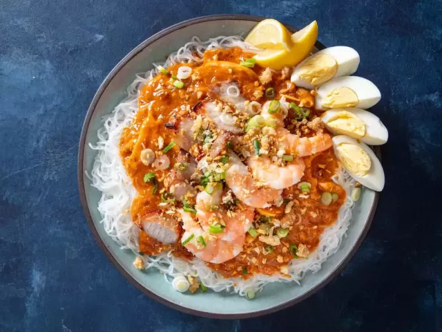 Otra forma muy popular de preparar fideos (pancit). Se mezclan con una salsa de camarón de color naranja vibrante (logrado con achiote) y se cubren con rodajas de huevo duro, chicharrones triturados, flakes de pescado ahumado y cebolletas.