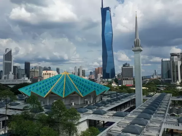 La Mezquita Nacional de Malasia en Kuala Lumpur es un símbolo de la modernidad del país. Ubicada cerca de la antigua estación de tren de la era británica, su diseño contrasta marcadamente con la arquitectura colonial de sus alrededores.