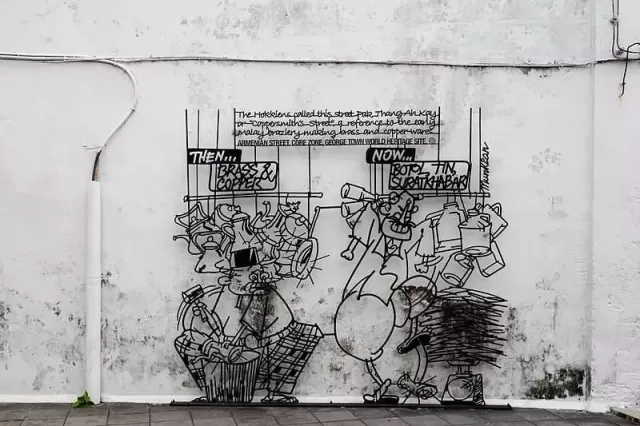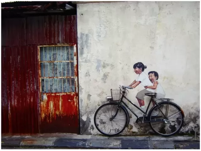 En la ciudad de Georgetown, en Penang, el arte no está confinado a los museos; se exhibe en las calles para que todos lo disfruten. Todo comenzó en 2009 cuando el gobierno local lanzó una campaña para embellecer la ciudad, declarada Patrimonio de la Humanidad por la UNESCO. El resultado fue una serie de 52 esculturas de carámica de acero que narran la historia y las historias de la comunidad local con un toque de humor.