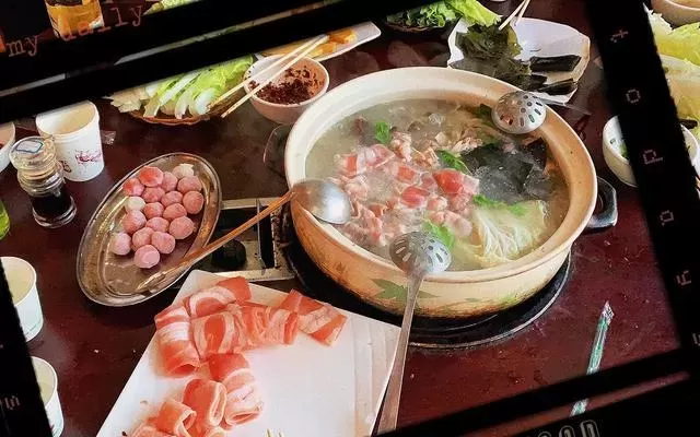 Este es el hotpot clásico que muchos chinos recuerdan, con su olla de cobre o latón con chimenea central, alimentada por brasas de carbón. El calor es intenso y constante, perfecto para cocinar finas lonchas de cordero fresco en segundos. Suele asociarse a restaurantes de estilo de comida halal (qingzhen) célebre en la comunidad musulmana local, con un aroma característico. La carne, típicamente cortada al momento y nunca congelada, es excepcionalmente tierna.