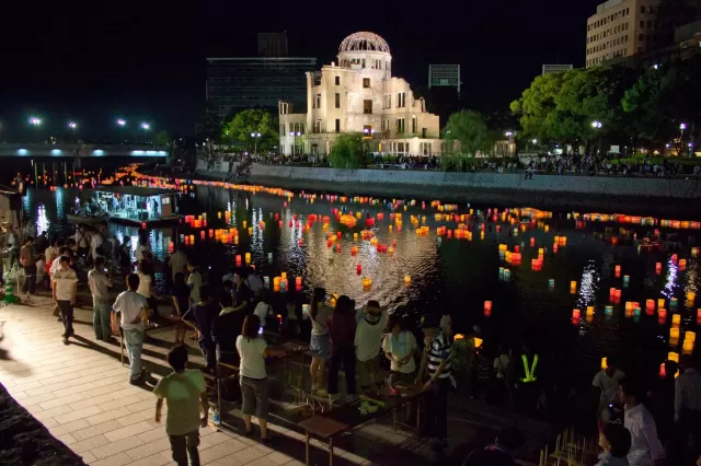 - Hiroshima: En el Parque de la Paz, donde se liberan unas 10,000 linternas en el río Motoyasu para conmemorar a las víctimas de la bomba atómica y orar por la paz mundial.