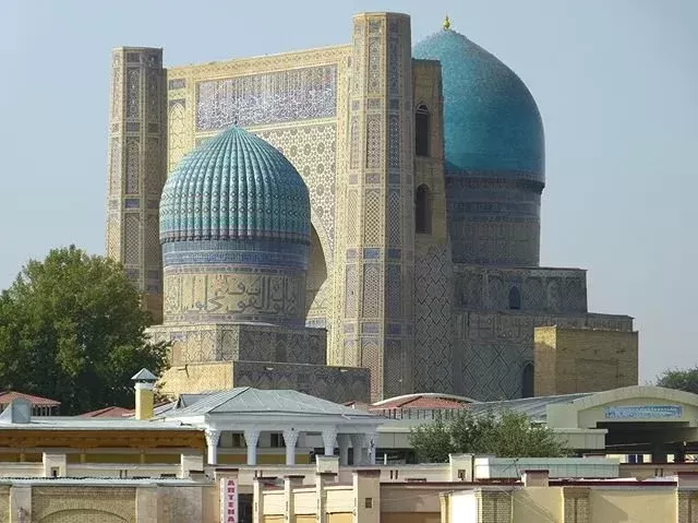 Construida con el botín de las campañas de Tamerlán en la India, esta mezquita es una de las más grandes en Asia Central, con una capacidad de aproximadamente 1000 personas. Su tamaño te dejará sin aliento. En el patio central hay un enorme soporte para el Corán de mármol, rodeado de leyendas locales.