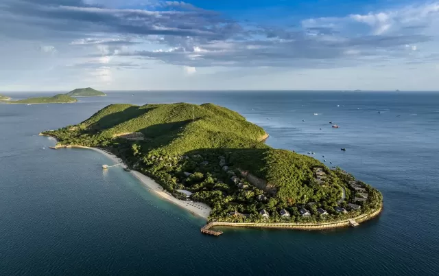 Hon Tam is synonymous with natural luxury. Its name comes from its silhouette, reminiscent of a silkworm lying on the sea. But what truly makes it unique is its mineral mud bath complex , the largest in Vietnam. Imagine immersing yourself in tiered thermal pools overlooking the sea, while the mineral-rich mud nourishes your skin. After the ritual, relax on its 1-km beach, with waters so crystal clear they resemble glass. For adventurers, seawalking allows you to explore coral reefs without needing to know how to swim.